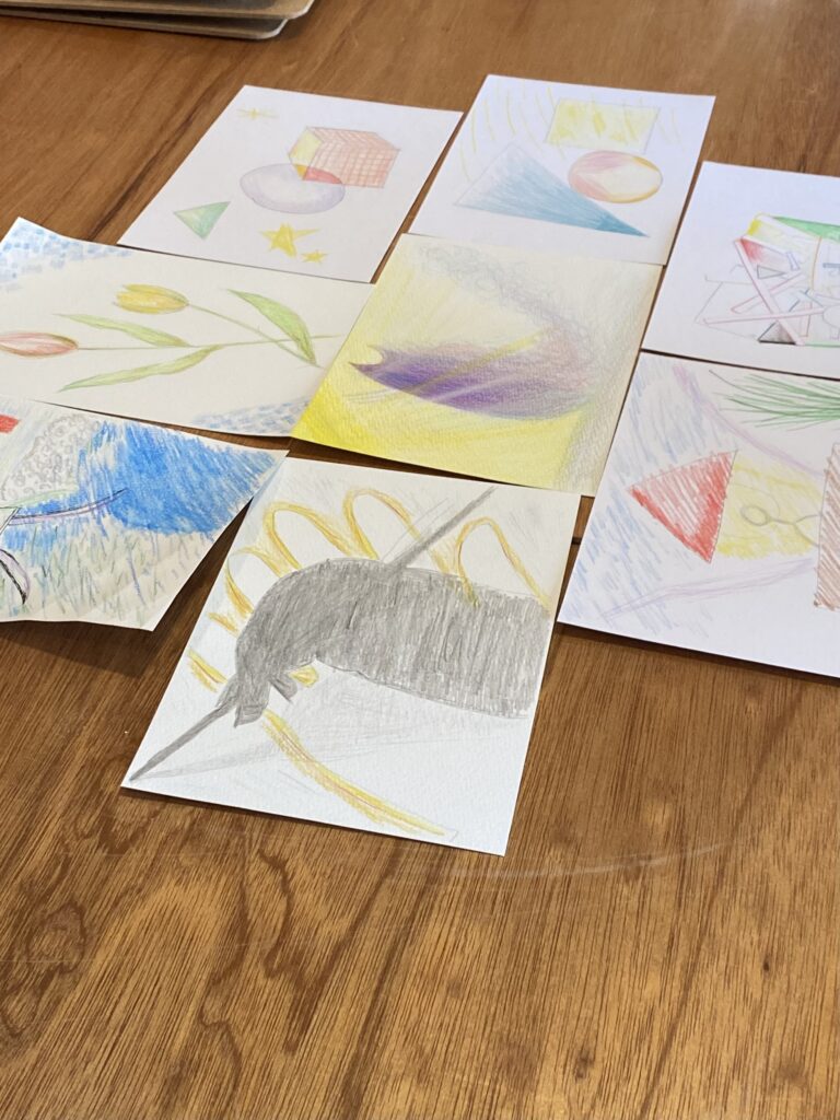 *手ぶらでOK。鉛筆・色鉛筆・紙(ハガキ大くらいを何枚か)をこちらで準備いたします。